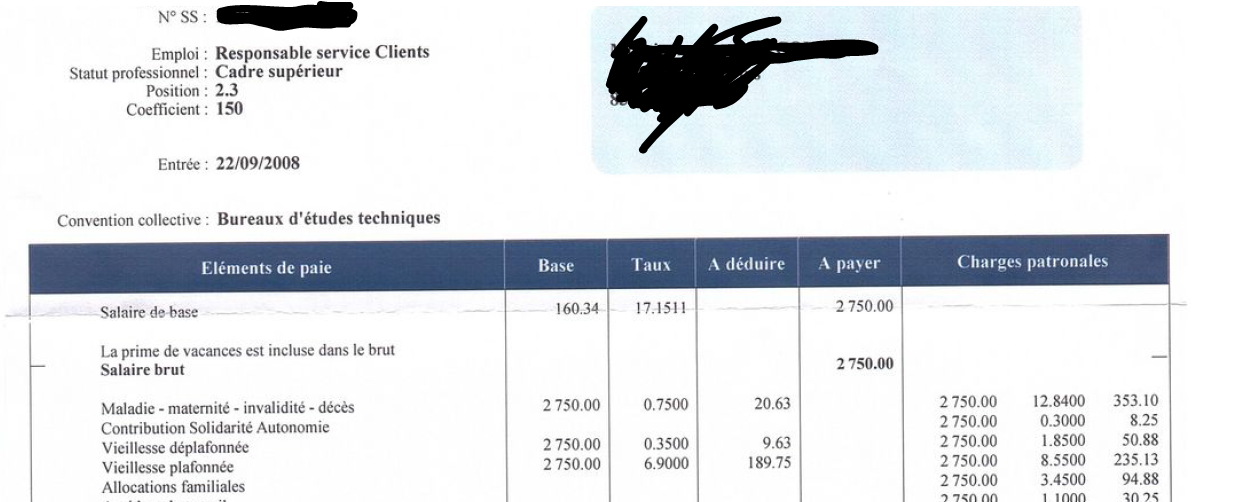 Je viens de passer cadre au coef 2.3 / 150 avec un salaire mensuel de 2750.