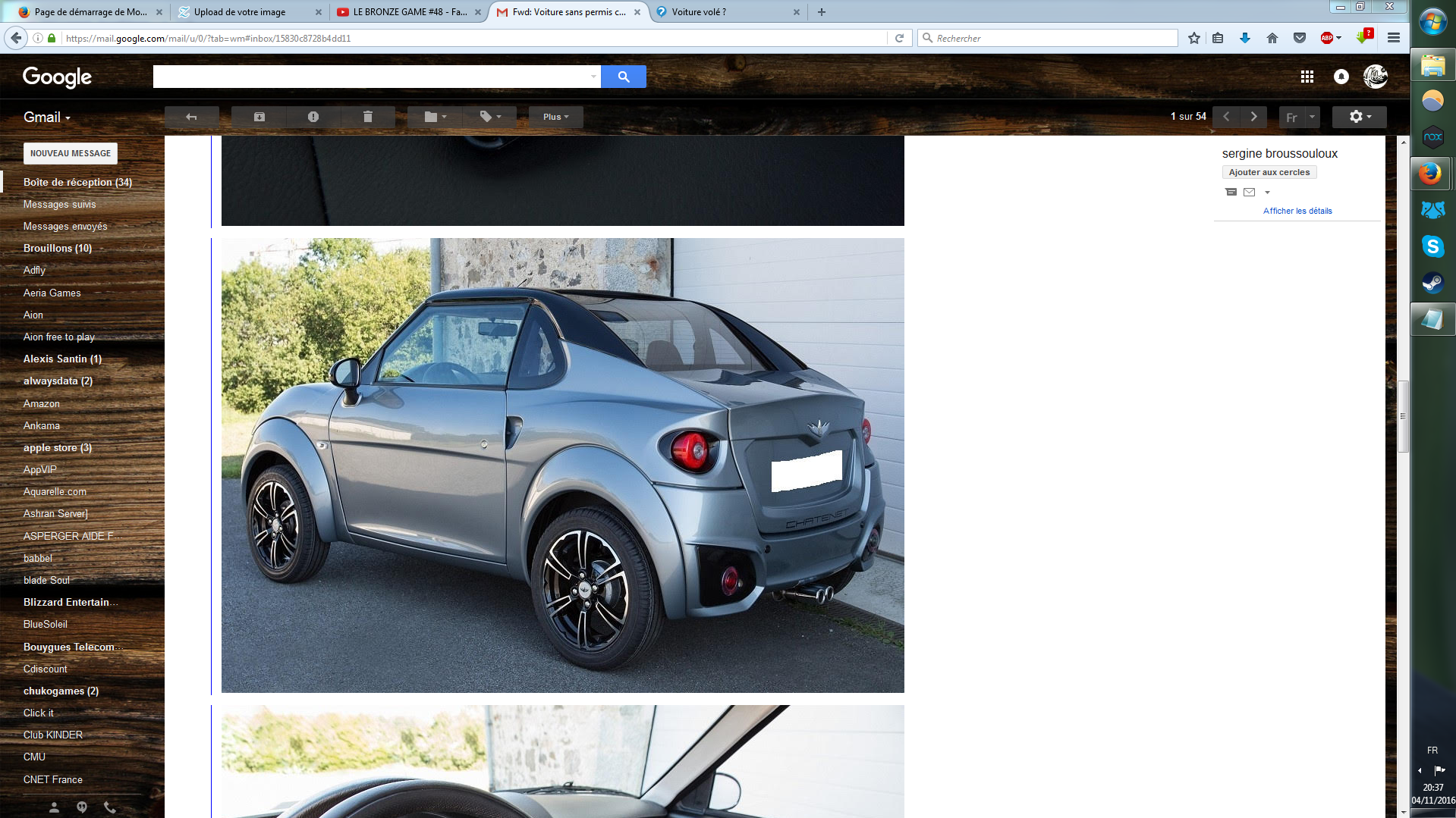 J' ai répond à une annonce de vente de voiturette d' occasion sur internet ce soir le monsieur ma répondue en me proposant la livraison chez moi avec quelque photos de la voiture: