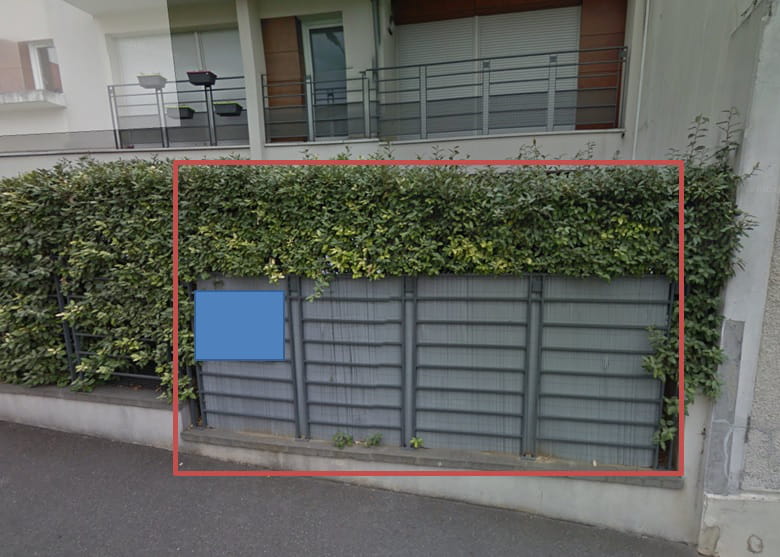 let muret serait sur ce cadre rouge, derrière la barrière ( afin de ne pas modifier la facade de l'immeuble)