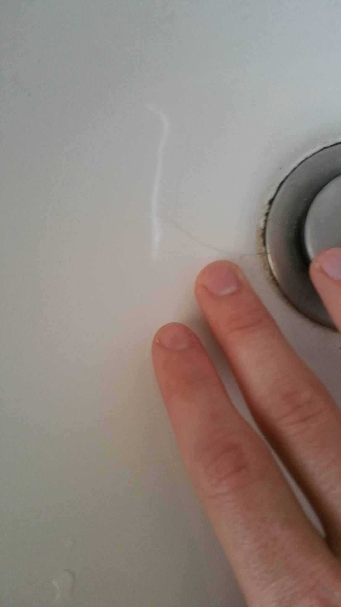 Justement, cette fissure n'est clairement pas dû à une dégradation de notre part, elle est dû à la vieillesse du lavabo. La maison est remplis de défauts et de bricolages/rafistolages donc on ne s'est pas attardé à une fissure presque invisible.