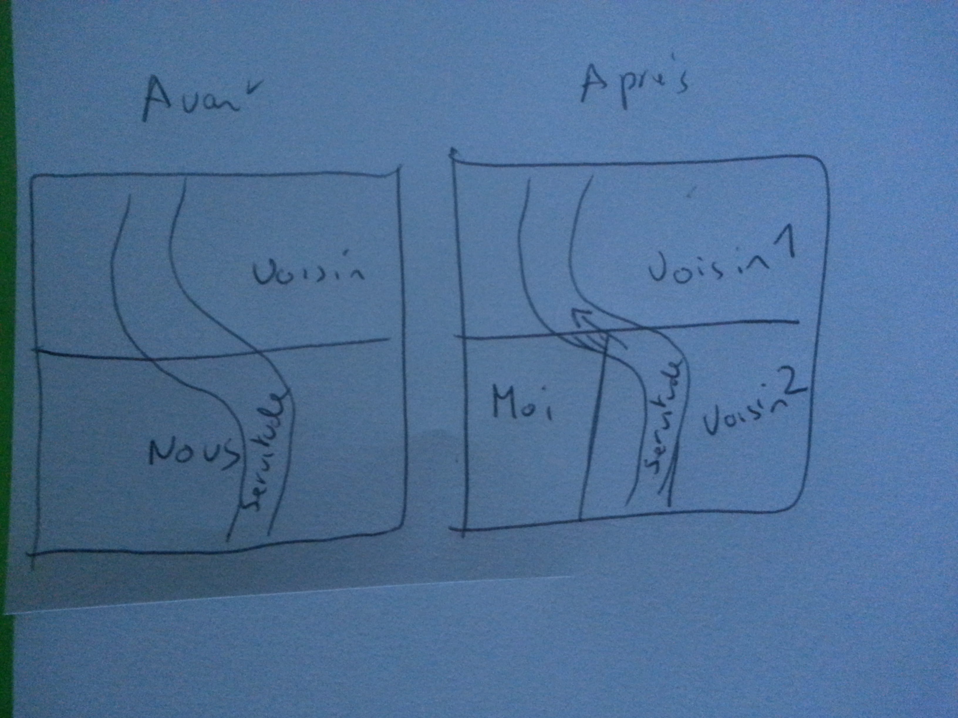 Je Précise quand même, que c'est une zone agricole, et que ce chemin (avant d'avoir une servitude dessus) desservait tout le terrain. Au moment de la servitude, c'était notre chemin d'usage pour parcourir la parcelle (du bas donc).