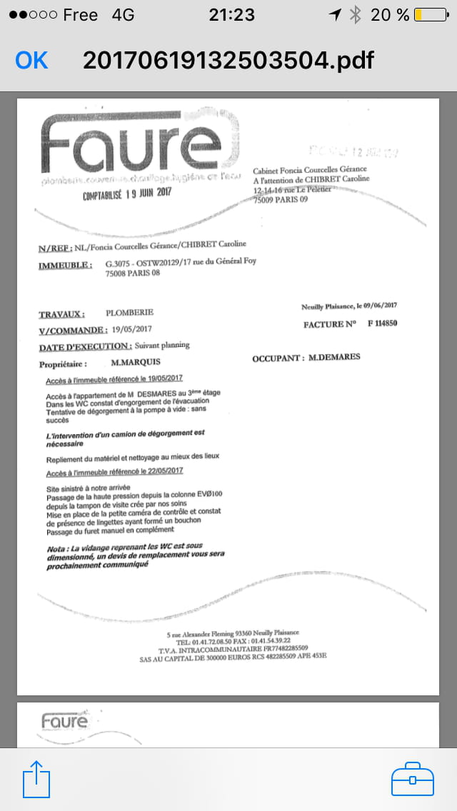 J'ai signalé le problème à l'agence Foncia qui a mandaté l'entreprise avec laquelle elle travaille en permanence et ils ont fait venir un camion sans nous avertir du prix