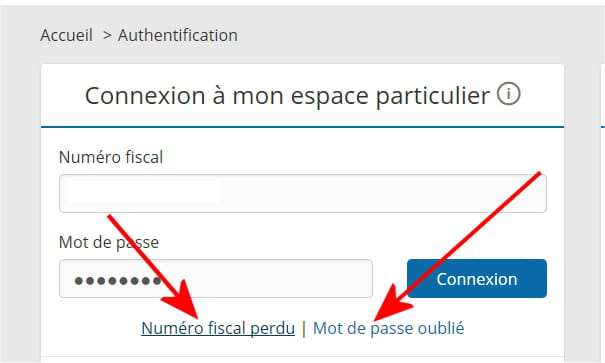Si tu n'as pas ton numéro fiscal, mais que sur ton compte ton adresse mail est bien renseignée, tu vas sur la page de connexion des impôts. Et tu cliques sur "Numéro fiscal perdu", tu arrives là.
