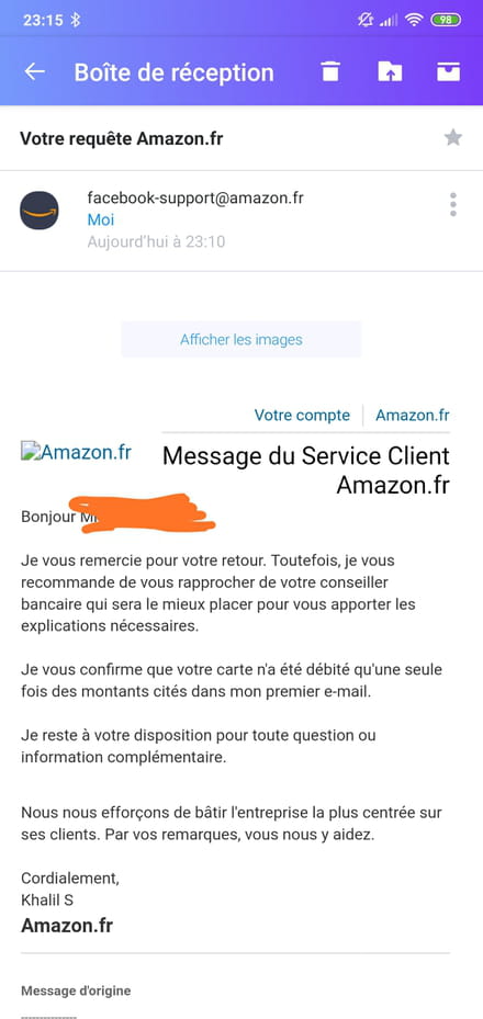 Inutile d'envoyer des mails à Amazon ils ne répondent pas
