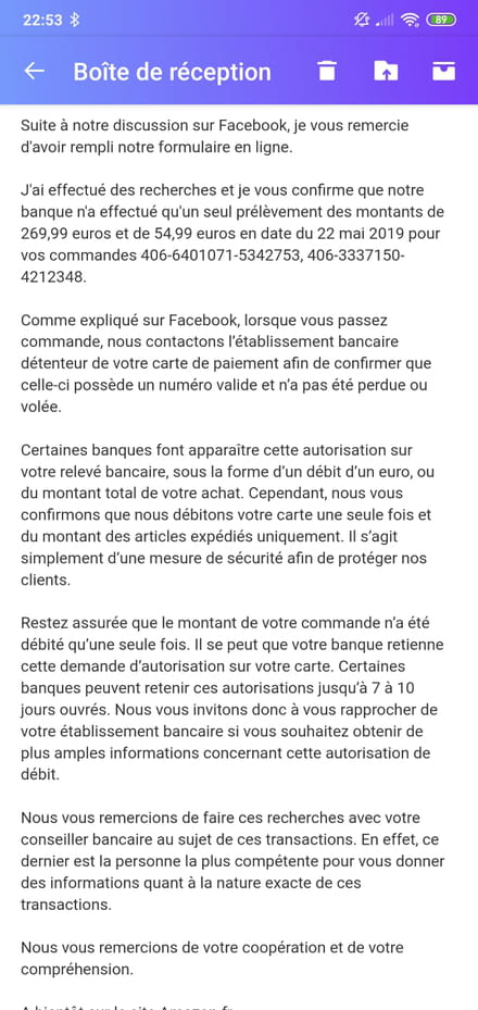 Je leur ai répondu le contraire en confirmant qu'il y avait bien eu deux prélèvements