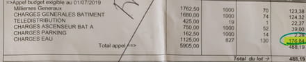 Apparemment le mode de calcul est légèrement erratique : sur l'appel de fonds est inscrit le tantième lot 130 ; apparemment calculé il y a de cela plusieurs années lorsqu'une famille habitait l'appartement dans lequel je suis. Mon voisin, qui a un plus grand appartement que moi et qui consomme plus, paie lui une somme très raisonnable.