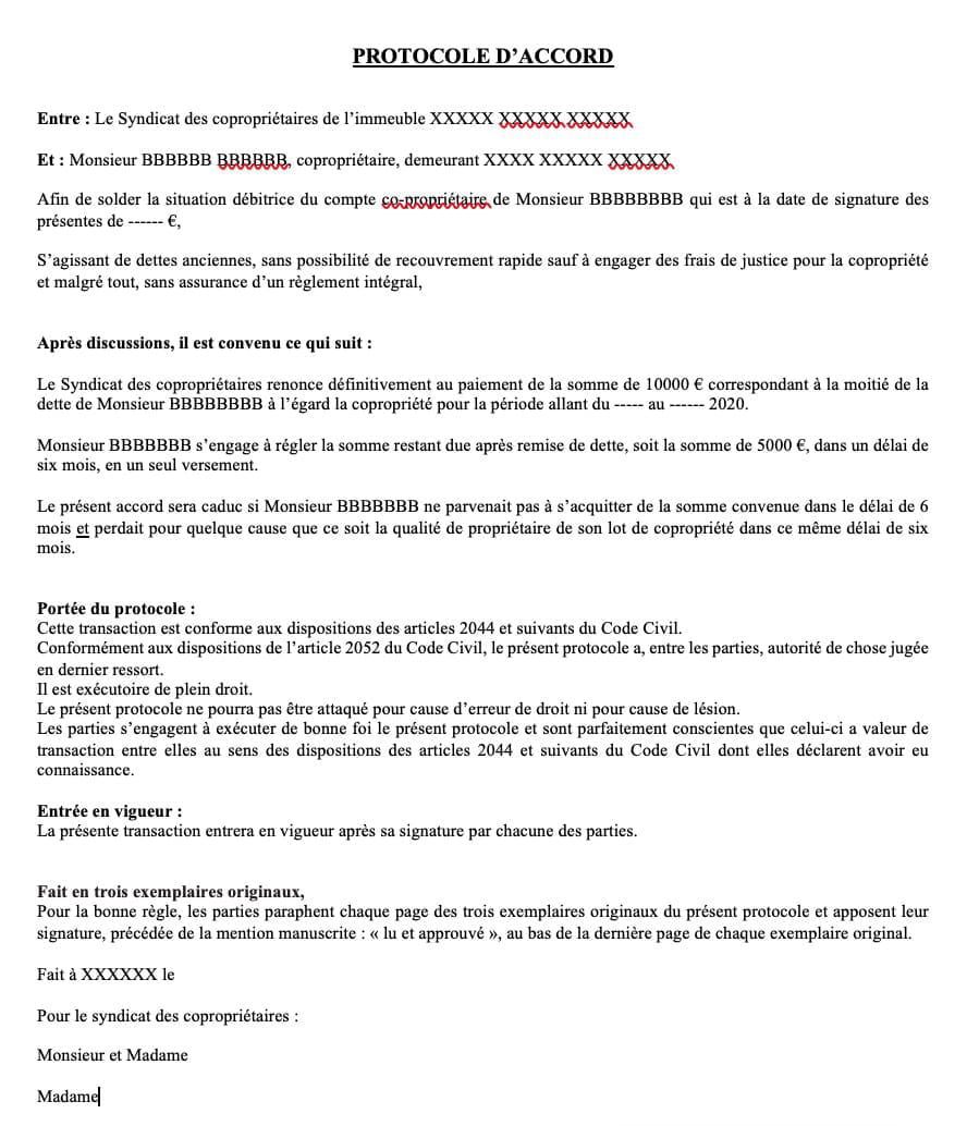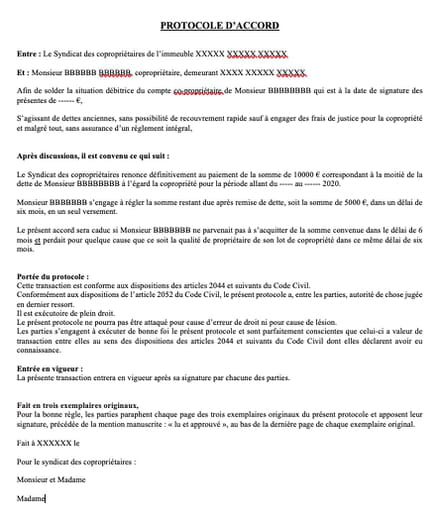 Charges de copropriété impayées - Légalité d'un accord de réduction de dettes