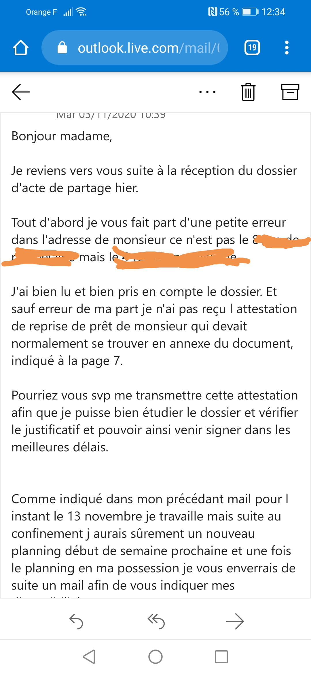 Je viens de recevoir le dossier dacte de partage qui indique que l'attestation est en annexe mais elle ne les pas alors je leur I envoyer un mail pr leur dire j attend donc de voir si je reçoit enfin cette attestation.