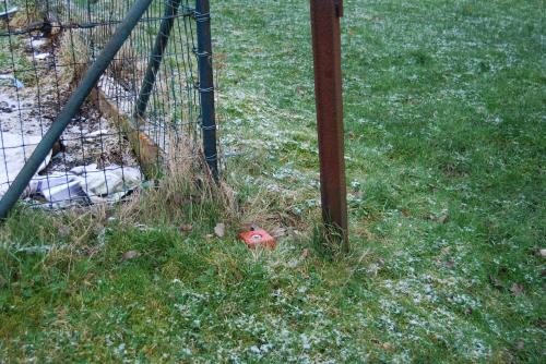 la clôture du voisin, à droite, est bien totalement, même un peu trop, sur son terrain par rapport à la borne (rouge).