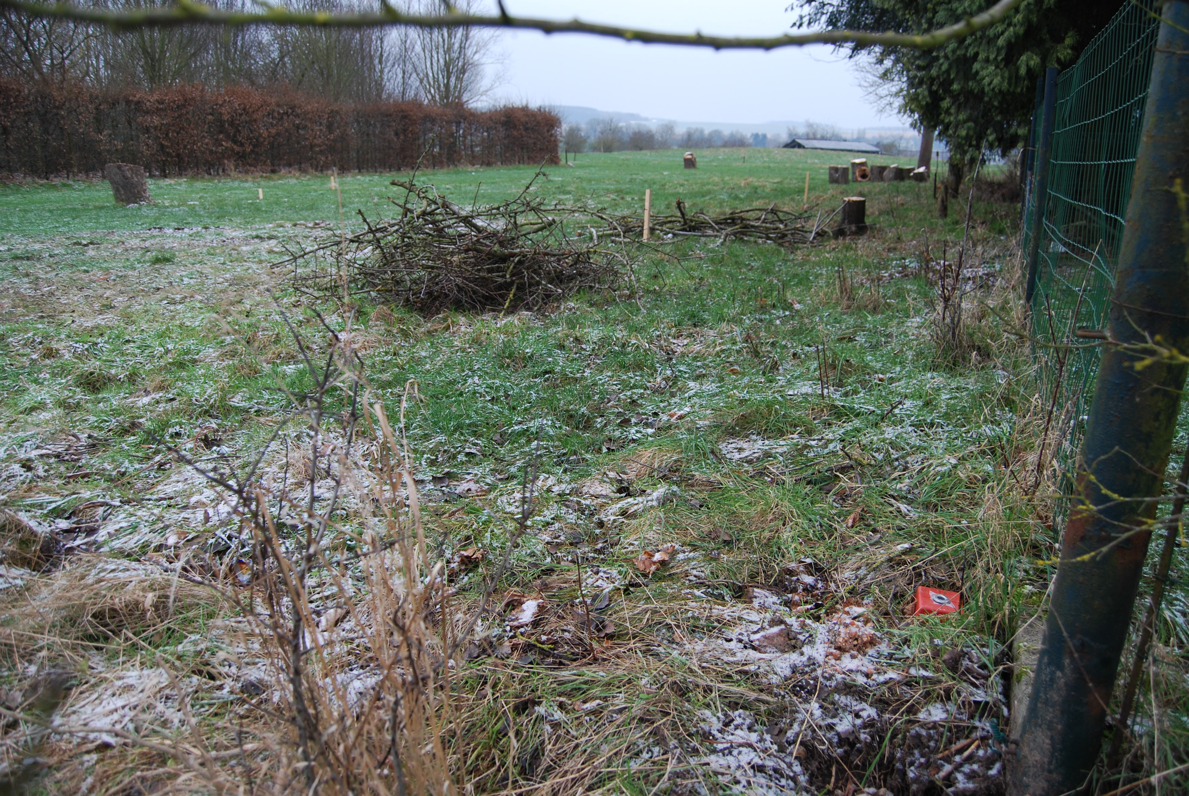 Je ne comprend pas tout, vous me dites que les deux lignes noires sont le remplissage, donc le grillage. Alors les poteaux sont bien au ras des bornes, côté voisin?( c'est lui qui pose la clôture).