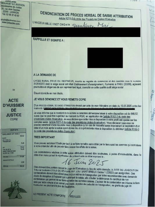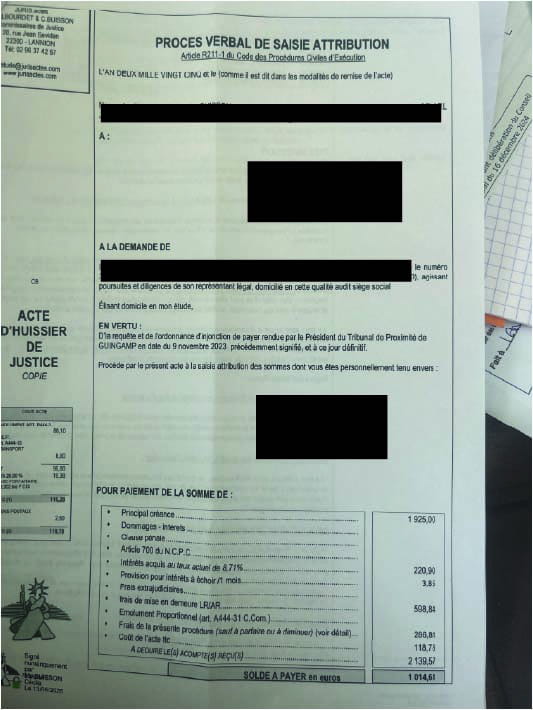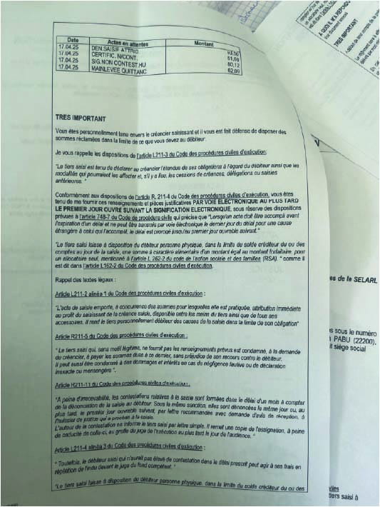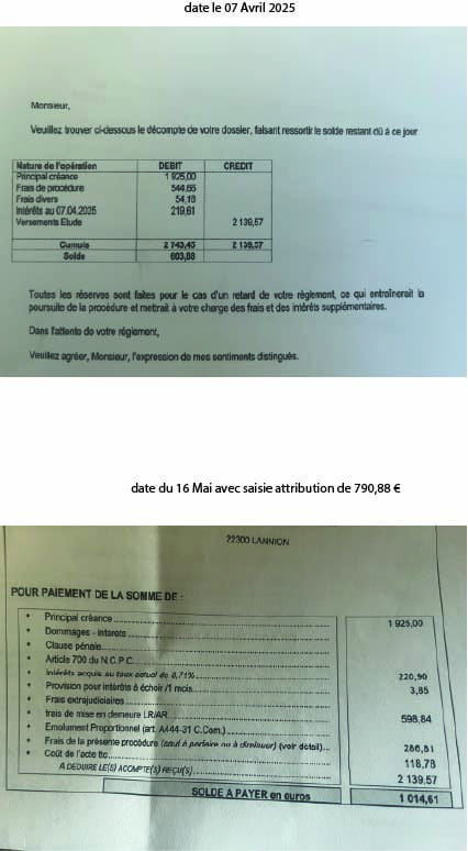 Aujourd'hui une saisie de nouveau sur mon compte bancaire de 790,88 €
