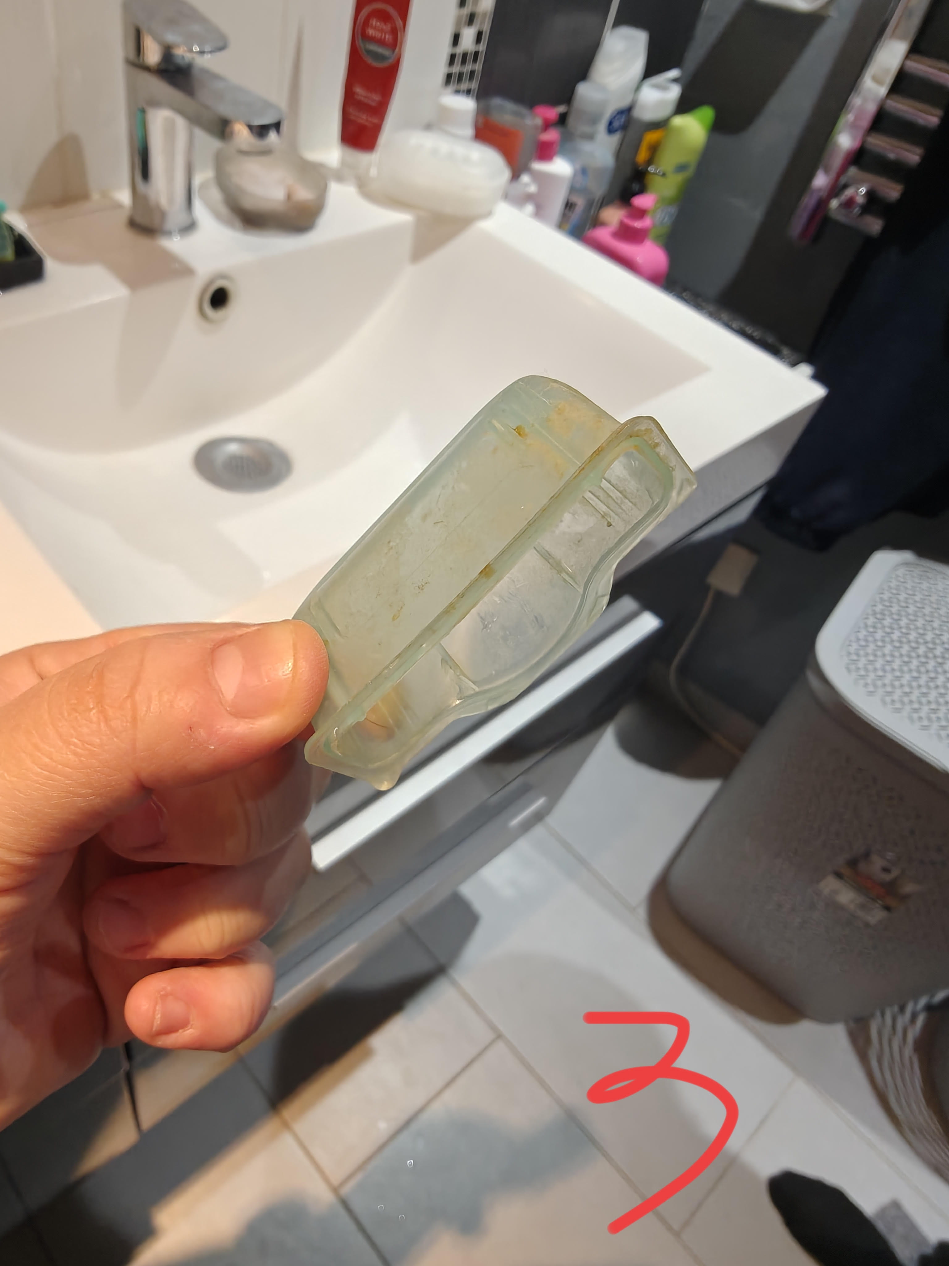 Mais un jour, nous avons un espèce de "bouchon" qui est tombé de derrière la barre de douche