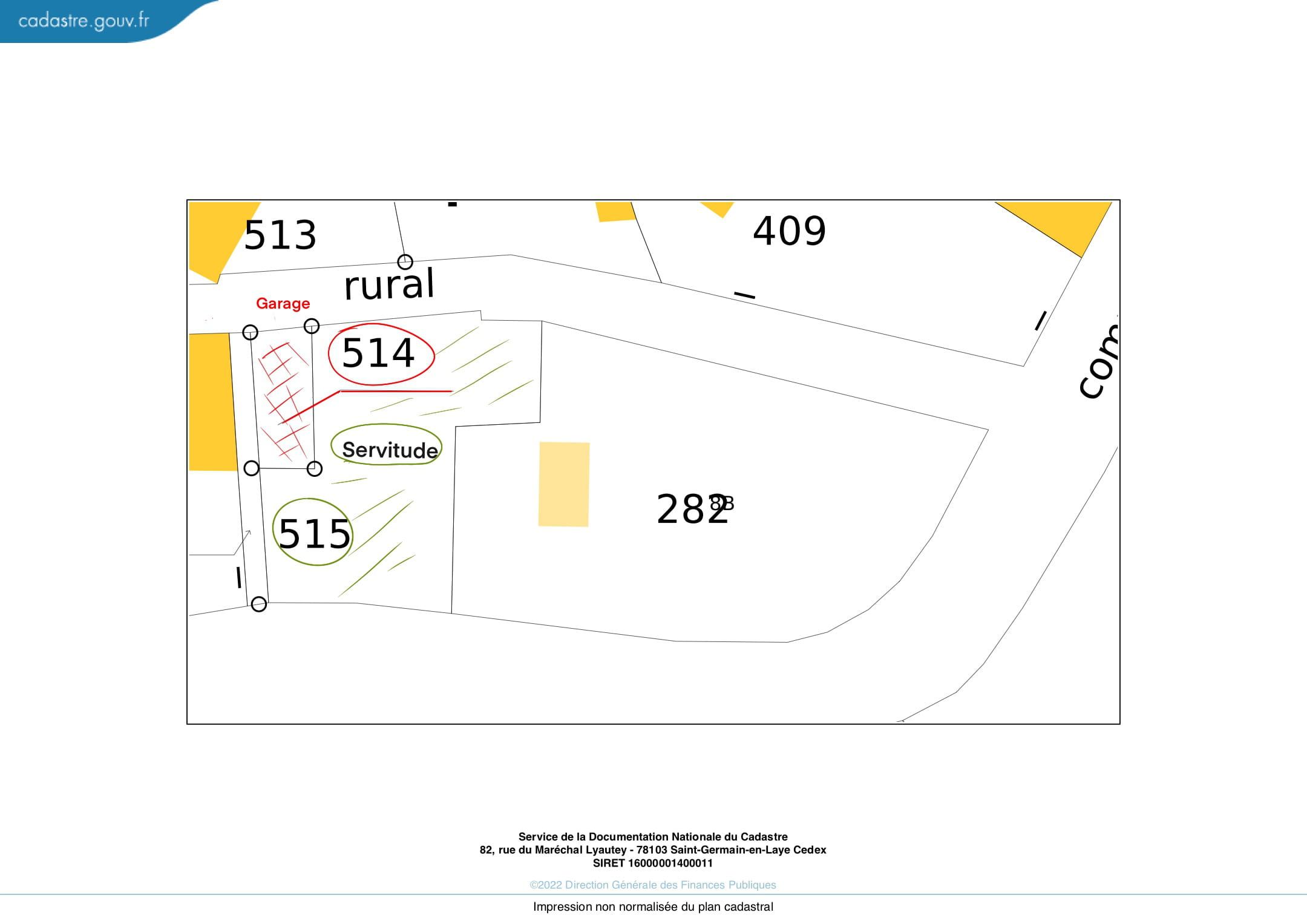 Apparemment, aucune servitude ne frappe la 514, seule la 515 constitue ladite servitude.