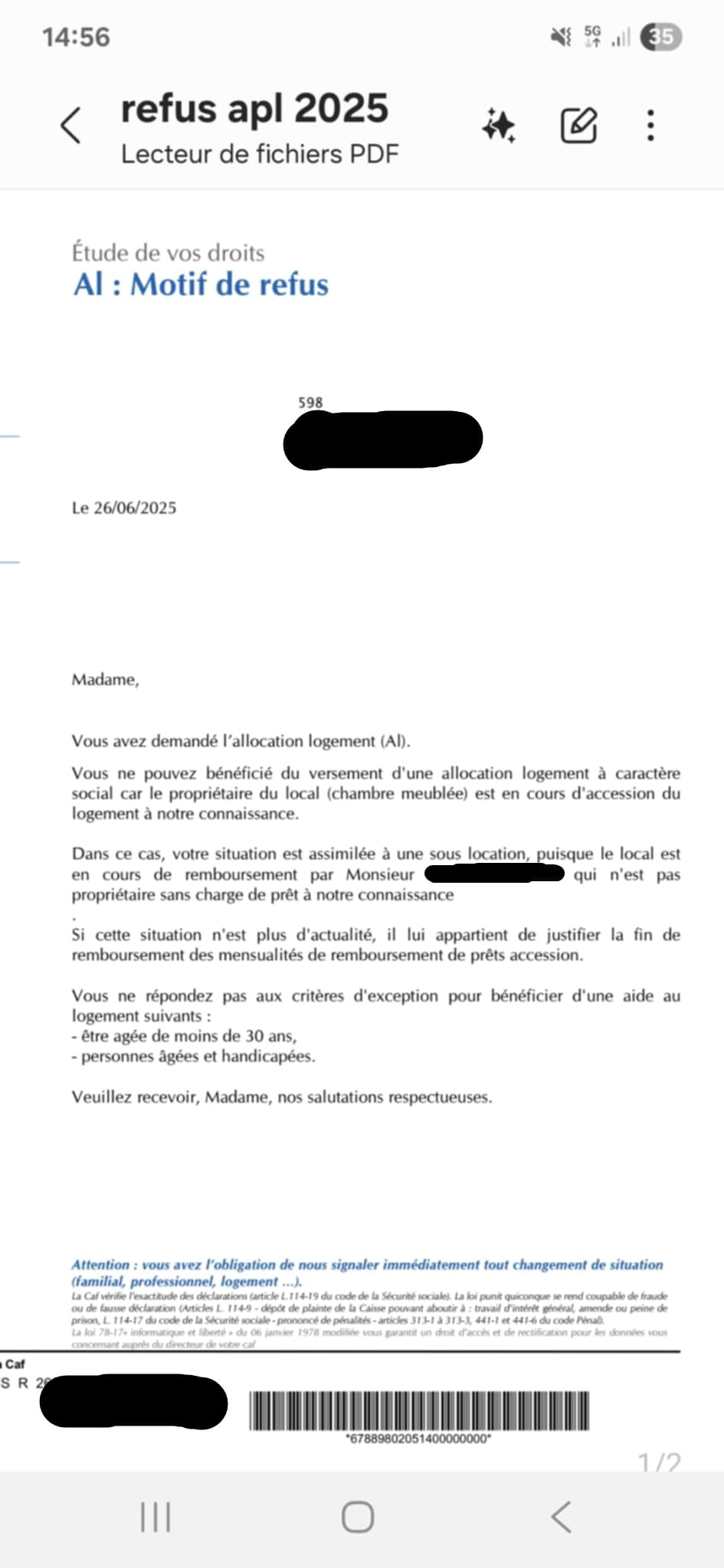 Ai-je droit à l'APL ? Car la colocataire déjà sur place a reçu un courrier de refus...