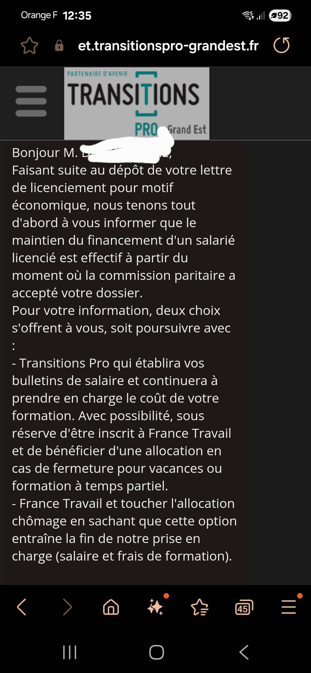 En juillet j'ai fait un dossier de reconcersion professionnel par transition pro. Mon dossier a etait accepté.Je pars en formation fin septembre Mais en août j'apprends que mon entreprise subit un licenciement economique.
