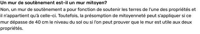 Une jurisprudence ancienne - qui, après recherche, semble introuvable - disait qu'un mur de soutènement pouvait être mitoyen (CA Montpellier, 18 mars 1992, Labit c/ Lagarrigue).