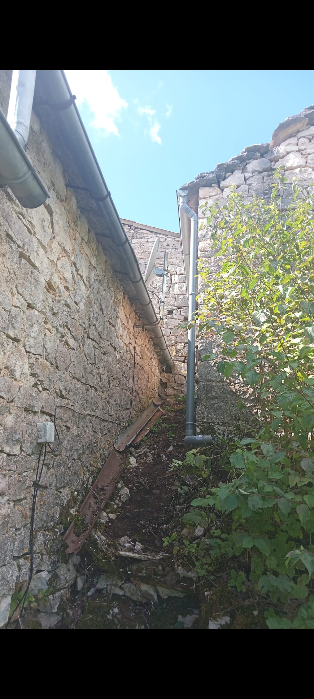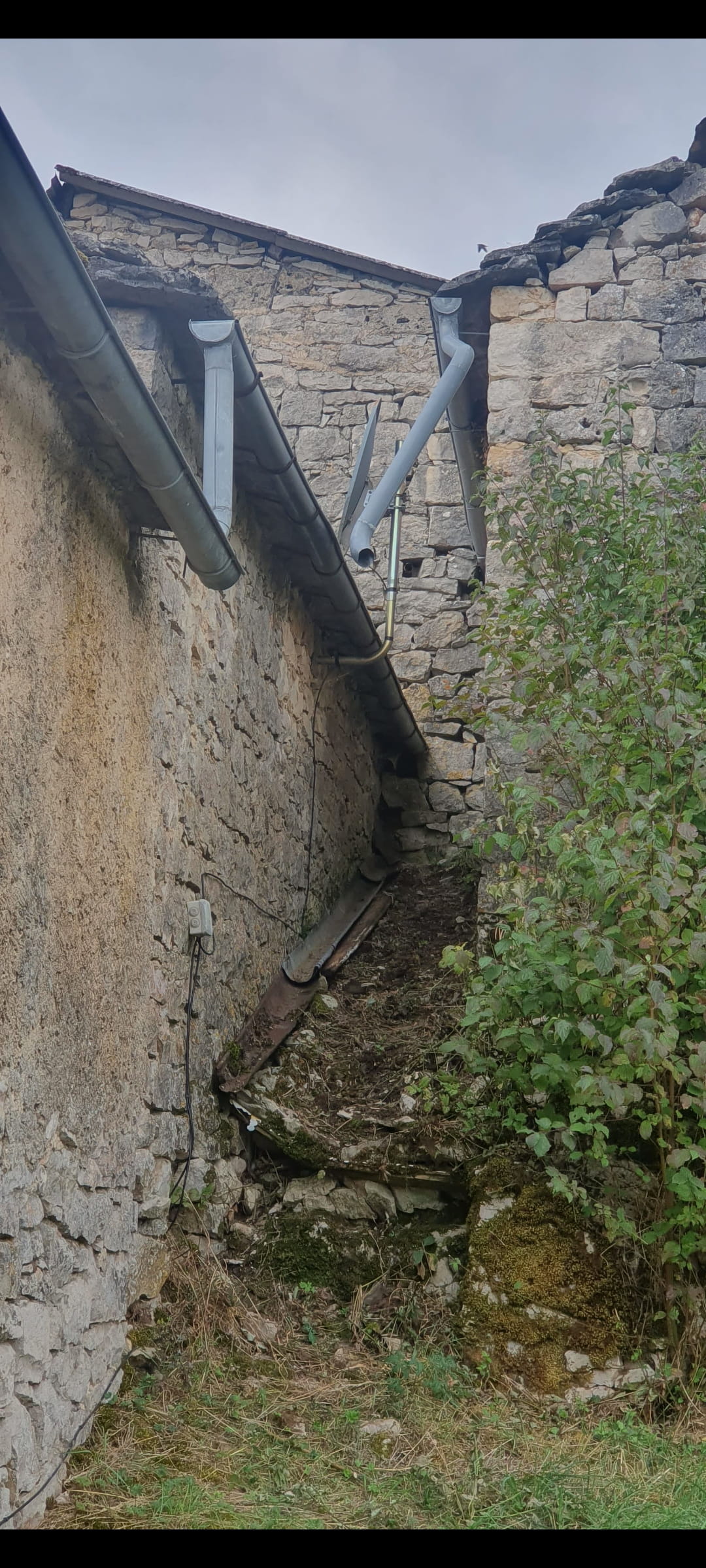J'ai immédiatement fait désolidariser ces 2 chaineaux et créé une gouttière le long de ma grange avec une évacuation à une distance de son mur pour répondre à l'urgence de sa problématique.