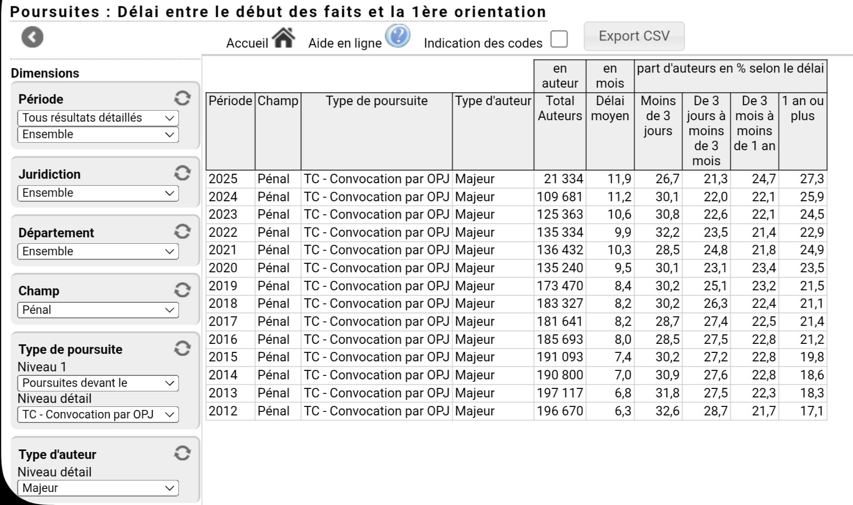 d’abord le délai entre la commission des faits et l’arrivée de l’affaire au parquet, qui couvre les investigations et signalements préalables ;