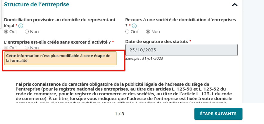 De plus, je ne peux plus modifier d'autres informations de l'entreprise: