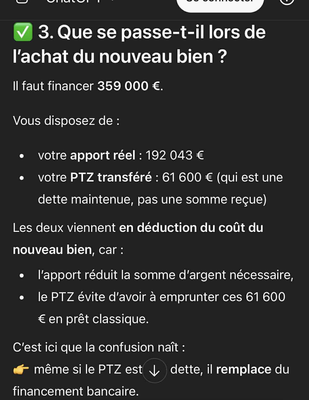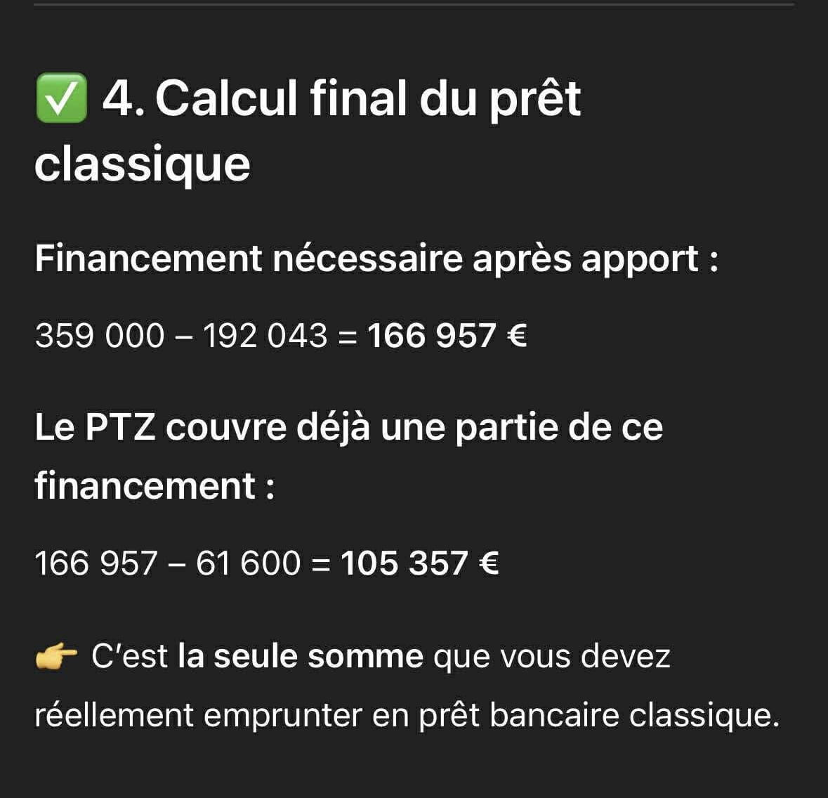 la banque m’indique qu’avec le transfert du PTZ, je ne dois emprunter qu’environ 87000€… Avec bien sûr le remboursement du PTZ qui continue…