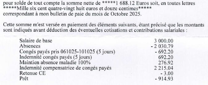 j'ai reçu de la part de l'entreprise la somme de 1688€12 en date du 30 10 2025.
