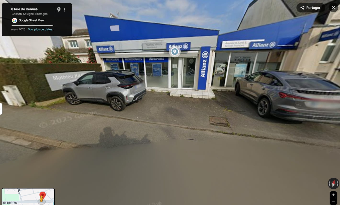 Le contexte : Il s'agit d'un espace situé juste devant la vitrine d'une agence d'assurance (Allianz). Je cherche à déterminer si cet espace appartient au domaine public (et donc si le stationnement est libre pour tous, dans la limite du code de la route) ou s'il s'agit d'une propriété privée (recul d'alignement) dont l'usage serait réservé à l'agence.