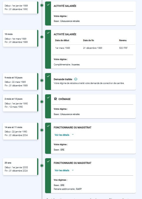 Comme j'ai débuté ma carrière de fonctionnaire le 23 janvier 1990, la transcription de ces périodes se trouvent de façon erronée sur le relevé de carrière parce que le cumul d'emploi de salarié et de fonctionnaire est interdit.