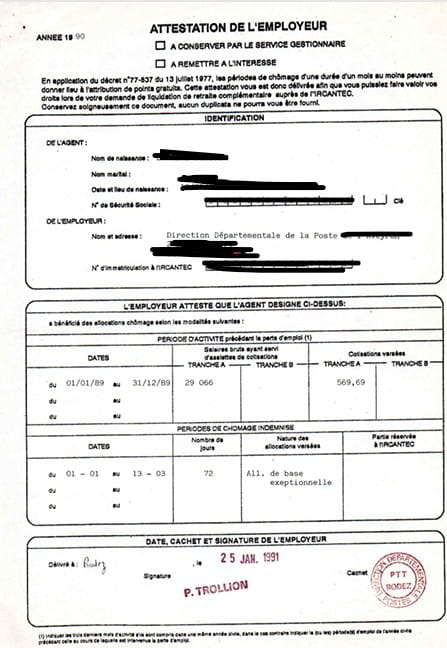 Il appartient à La Poste qui ma employé comme auxiliaire et qui m'emploi comme fonctionnaire de me fournir une attestation indiquant que j'étais au chômage du premier janvier au 31 mars 1989 et du premier octobre 1989 au 22 janvier 1990.