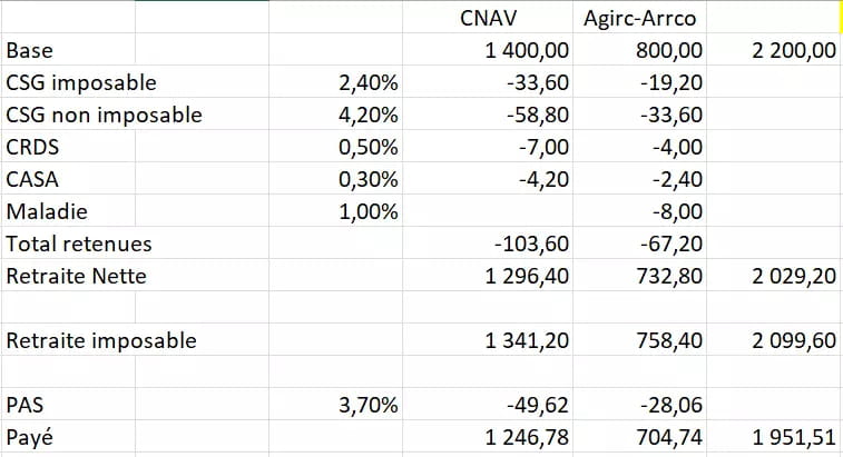 Comme pour les salariés, il existe la pension nette imposable, ce n'est ni la pension brute, ni la pension nette, c'est entre les 2. Et surtout il faut étudier les taux de cotisation (CSG, ...) sur la retraite qui vont dépendre du RFR N-2. Tout comme on ne touche pas la retraite nette, mais la retraite nette moins le Prélèvement A la Source.