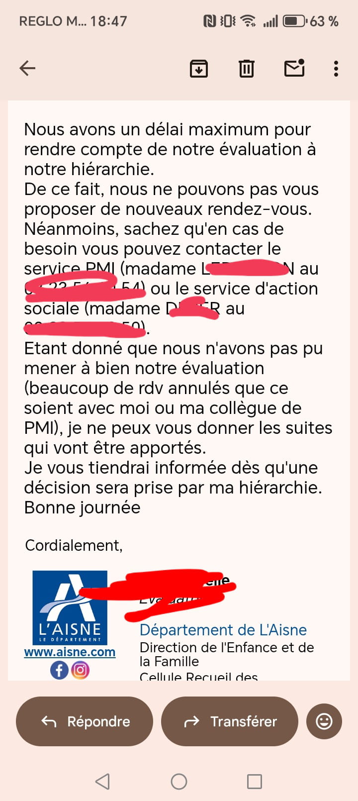 Bonjour je vous explique suite a une signalement venu de chez la maman j'ai récupéré mes fille depuis le 17 mai j'ai eu plusieurs RDV avec une assistante sociale tout c'est bien passé et avec une évaluatrice tout ce passé très bien belle maison enfants heureuse et en bonne santé tout et bien a l'école mais voilà j'ai loupé des RDV et lavaluation a pas pu être terminé a temps Quesque je surtout mais fille quelques personne me parle de placement la plupart me dit que non j'aurais une éducatrice ou AEMO ou autre aidé moi svp a comprendre merci beaucoup