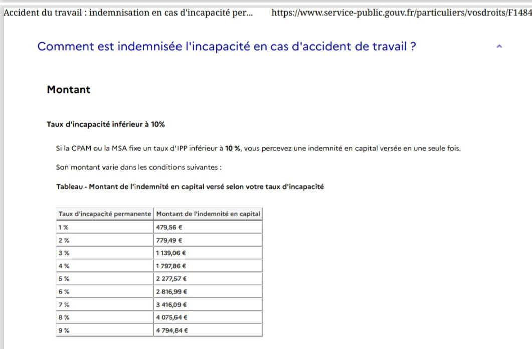 Le versement d'un capital dans le cadre d'une ipp inférieure à 10% c'est lorsque c'est la Cpam ou la Msa qui fixe ce taux. https://www.service-public.gouv.fr/particuliers/vosdroits/F14840