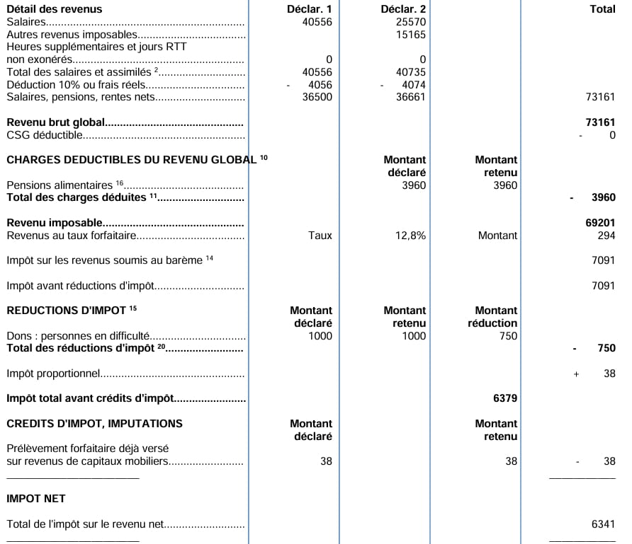 Je précise également que les pensions alimentaires qui apparaissent en charges déductibles sont supportées par le déclarant 2.