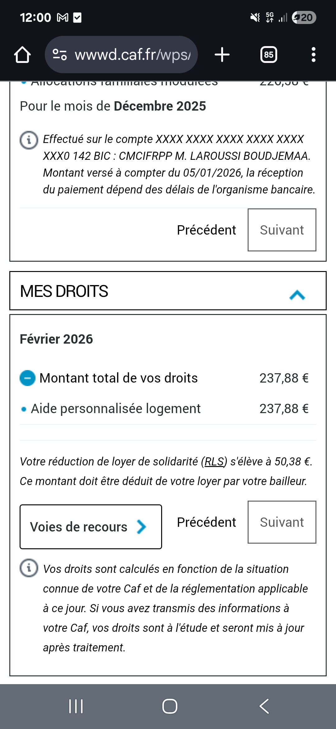 Si decembre 2025 a été payé en janvier 2026, les allocations de février devraient en toute logique être versérs en mars