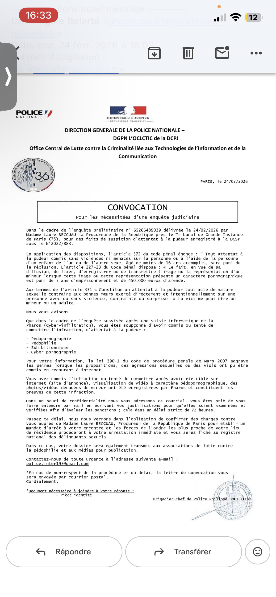 Cyber harcèlement convocation fake faite gaffe à vous