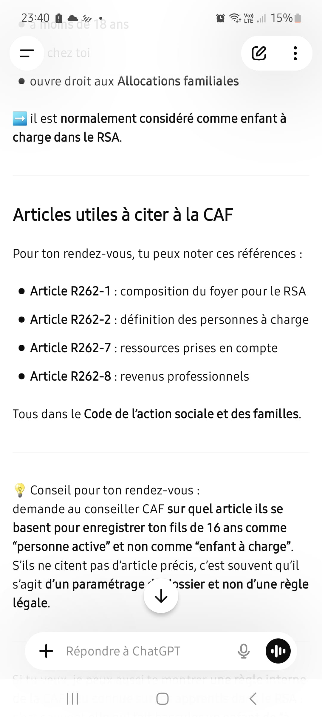 En faite la il me mette plus mon enfant à charge mais en personne entière active. Hors il est bien à ma charge. Il vit bien à mon domicile et je l'entretiens toujours. La au lieu d'être considérée comme enfant il est considéré comme personne active au foyer. Hors ses salaires sont minime et ne sont pas dédié à mon foyer