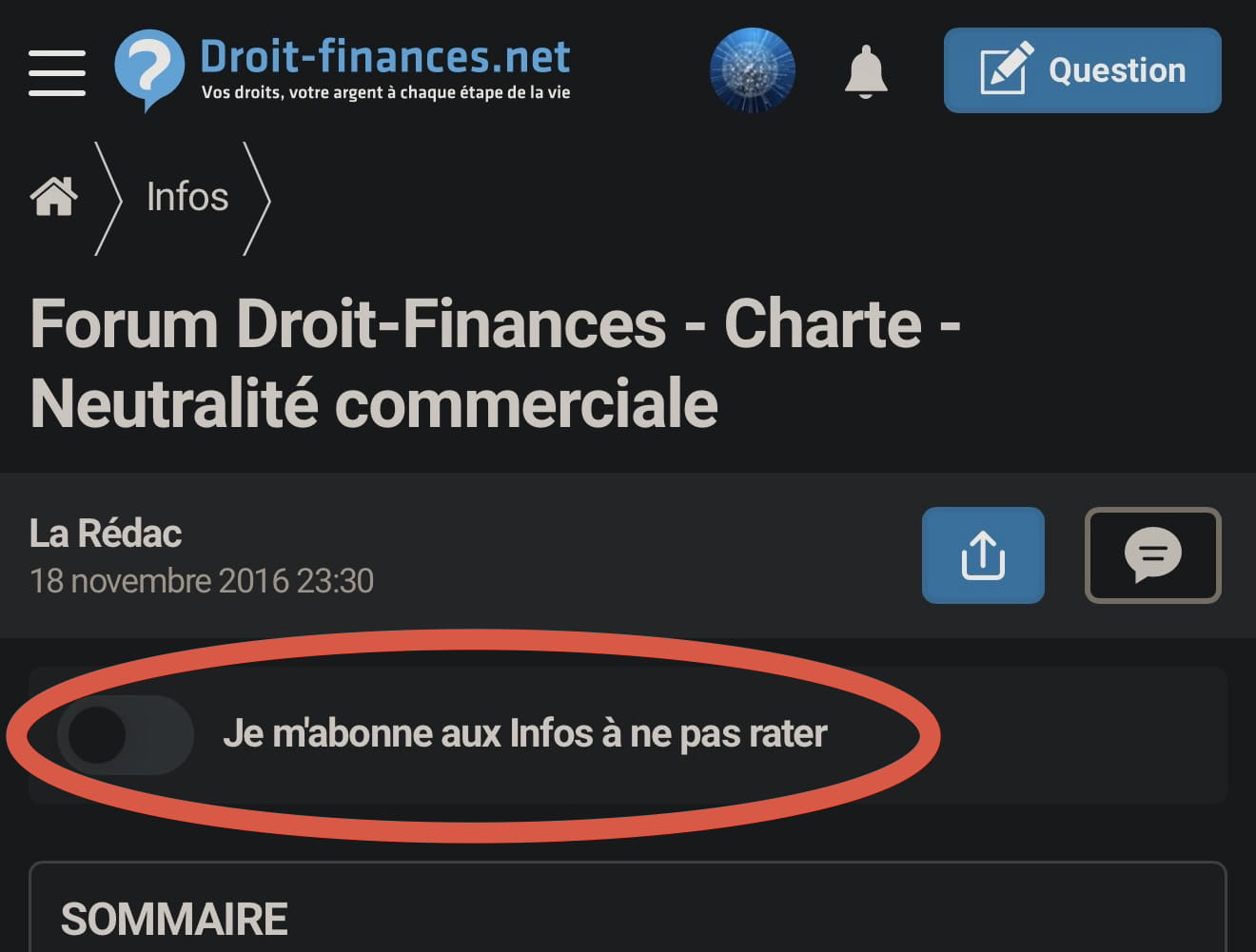 A quoi sert le bouton "je m’abonne aux infos à ne pas rater" présent au sommet de la charte ?